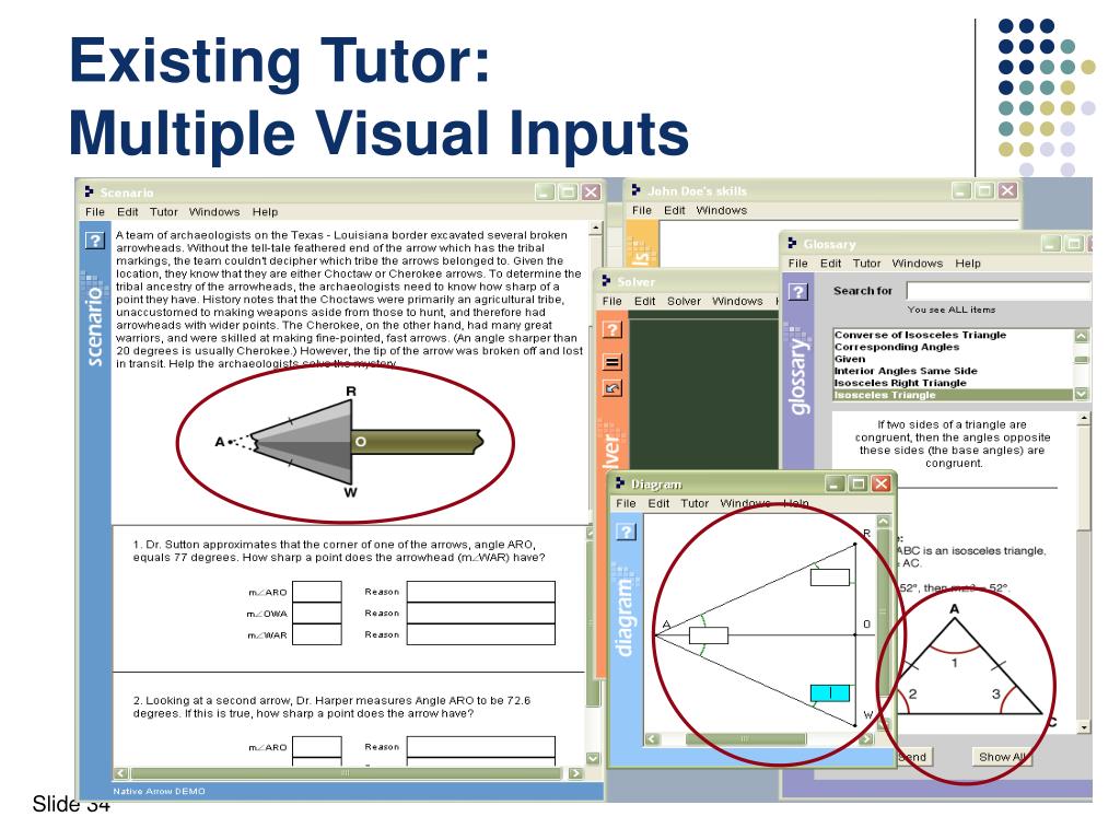 Visual & Verbal Information in Geometry Geometry Cognitive Tutor: Angles and Circles Units.