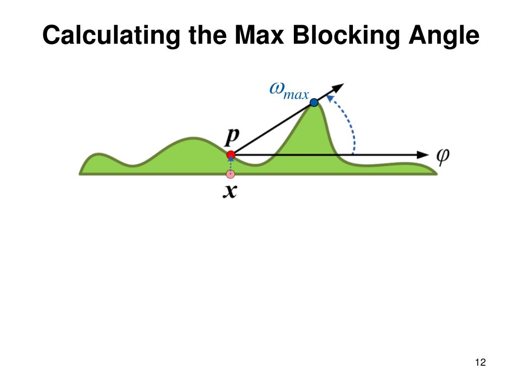 Calculating the Incident Radiance Which points on the height field contribute indirect radiance? The set of points with monotonically increasing blocking angles. We call this the casting set.