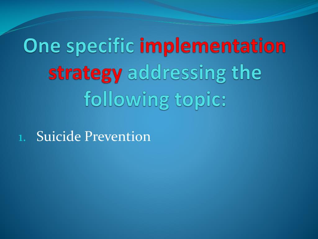 One specific implementation strategy addressing the following topic: Suicide Prevention