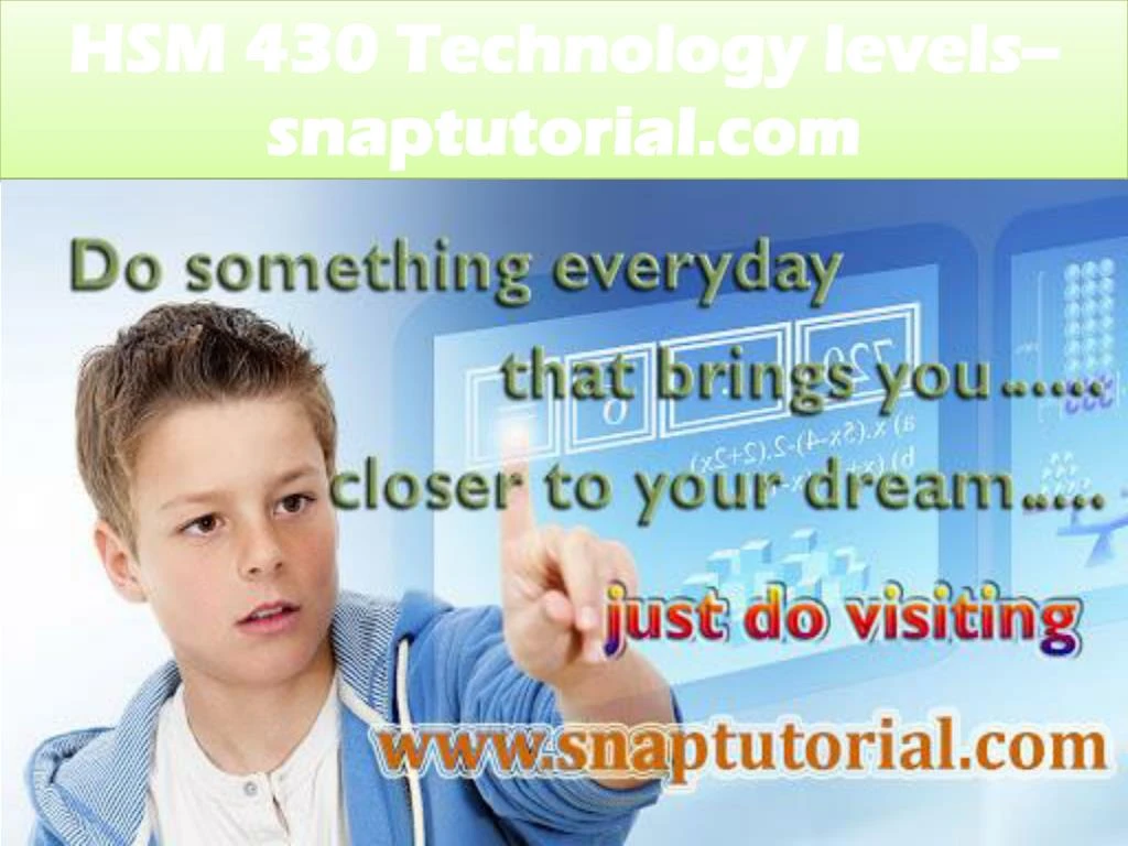 HSM 430 Technology levels--snaptutorial.com HSM 430 Week 7 Course Project For more classes visit www.snaptutorial.com HSM 430 Week 7 Course Project