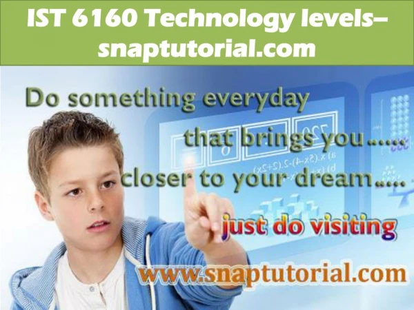 IST 6160 Technology levels--snaptutorial.com IST 6160 Week 5 Assignment 3 Review Web Standards For more classes visit www.snaptutorial.com Included the URL of the selected Web site. Identified the instances where the Web standards were followed consistently. Identified the instances where there were deviations from the Web standards. Suggested changes for improving the Web site.