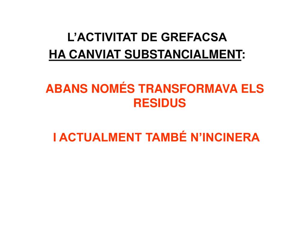 L’ACTIVITAT DE GREFACSA HA CANVIAT SUBSTANCIALMENT: ABANS NOMÉS TRANSFORMAVA ELS RESIDUS I ACTUALMENT TAMBÉ N’INCINERA