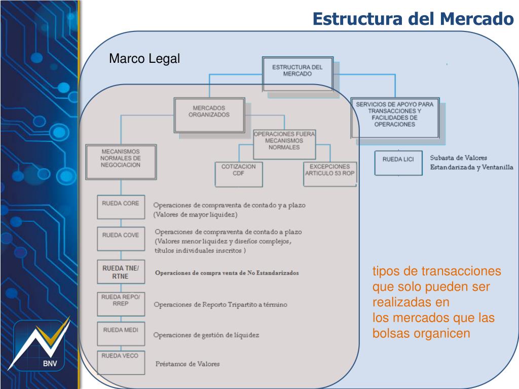 Estructura del Mercado Marco Legal tipos de transacciones que solo pueden ser realizadas en los mercados que las bolsas organicen