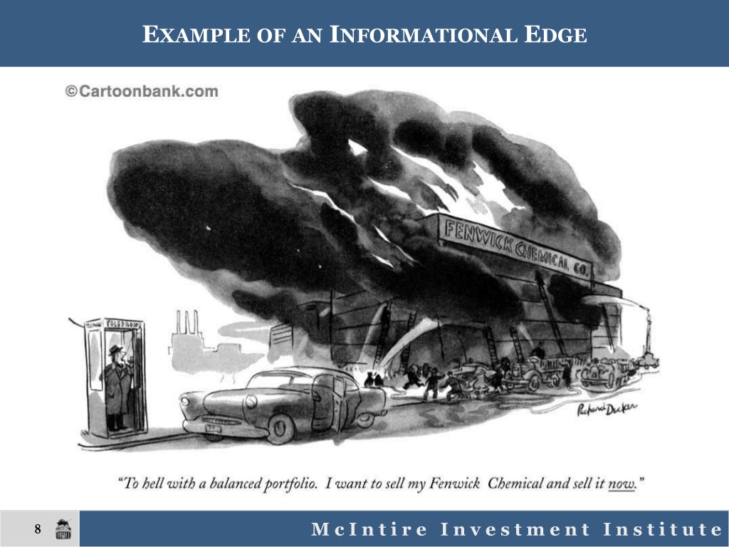 Efficient Market Hypothesis • Thesis championed by economist Burton Malkiel • All publicly available information is priced into stocks • Implication: stock pickers cannot consistently beat the market without inside information • MII’sresponse: • Certain stocks exhibit more efficiency than others • We can win with better information and better analysis than the market