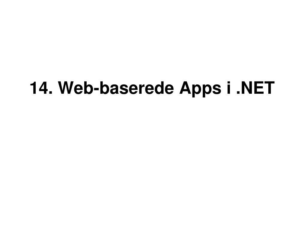 14. Web- baserede Apps i .NET. Objectives. “Real-world applications are typically multi-tier, distributed designs involving many components — the web server being perhaps the most important component in today's applications...” Web-baserede applicationer IIS WebForms WebServices. Del 1.
