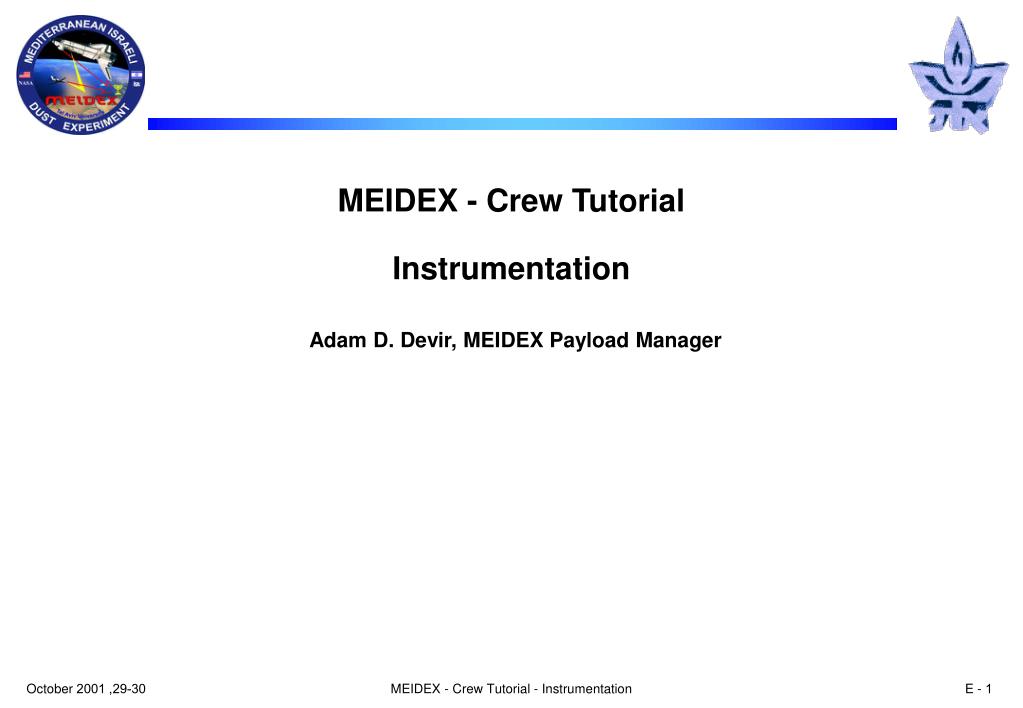 MEIDEX - Crew TutorialInstrumentationAdam D. Devir, MEIDEX Payload Manager MEIDEX - Crew Tutorial - Instrumentation