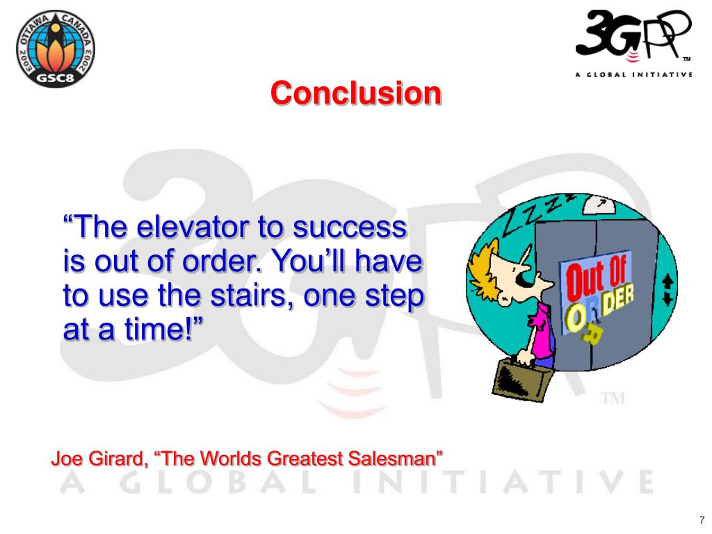 Conclusion “The elevator to success is out of order. You’ll have to use the stairs, one step at a time!” Joe Girard, “The Worlds Greatest Salesman”