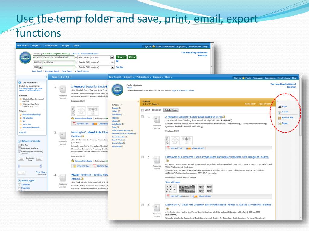 Hints: finding a journal article when you are given the details • E.g. Eisner, E. (2006). Does arts-based research have a future? Studies in Art Education, 48(1), 9-18.