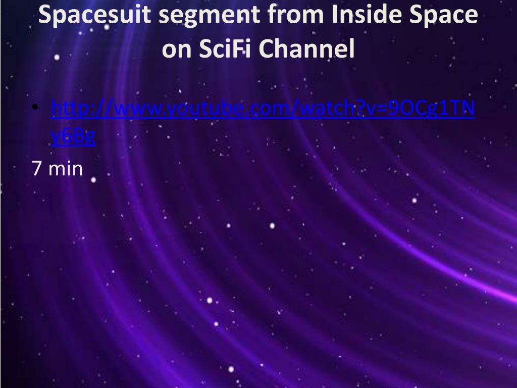 Spacesuit segment from Inside Space on SciFi Channel • http://www.youtube.com/watch?v=9OCg1TNy6Bg 7 min