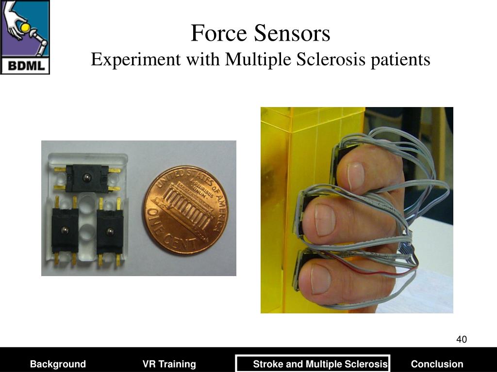 Microcontroller and circuits Feedback Strategy for Multiple Sclerosis Vibrational tactorattached to fingernail Force Sensorattached to fingerpad Impaired Hand Healthy Hand