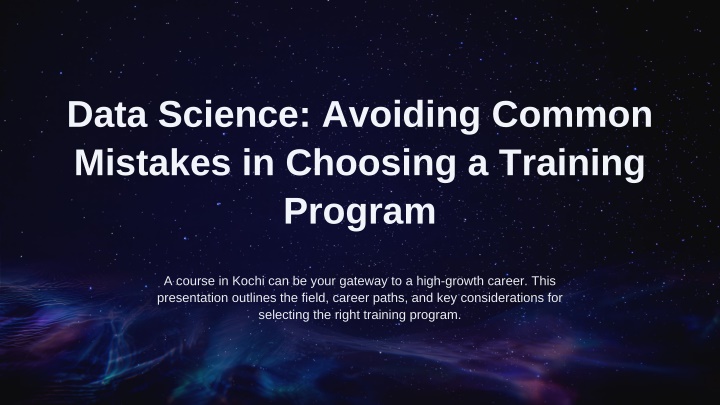 1. Data Science: Avoiding Common Mistakes in Choosing a Training Program A course in Kochi can be your gateway to a high-growth career. This presentation outlines the field, career paths, and key considerations for selecting the right training program.