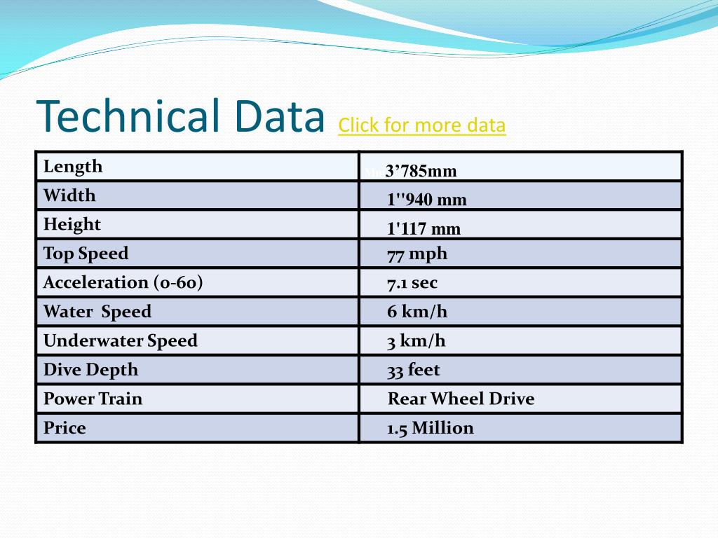 Rinspeed’ssQuba • What exactly can the sQuba do? • All the sQuba has to offer • Technical Data • Other Technologies Similar to the sQuba