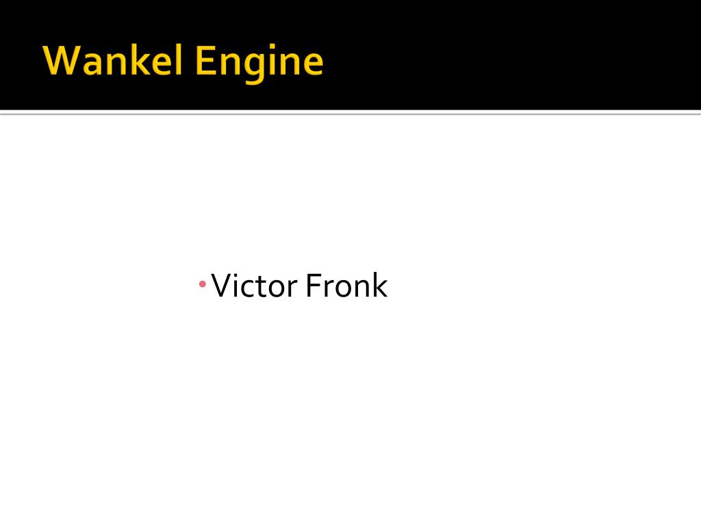 Wankel Engine . Victor Fronk. Wankel Engine. Better known as the Rotary Engine. Wankel Engine. Compression Stroke. Intake Stroke. Wankel Engine. Power Stroke. Exhaust Stroke. Applications. Mazda RX-7. 1.3 liter twin rotary Mazda engine. Sources.