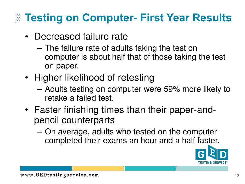 The Results Are In Computer based testing for the GED® test is faster, less stressful, and produces better results