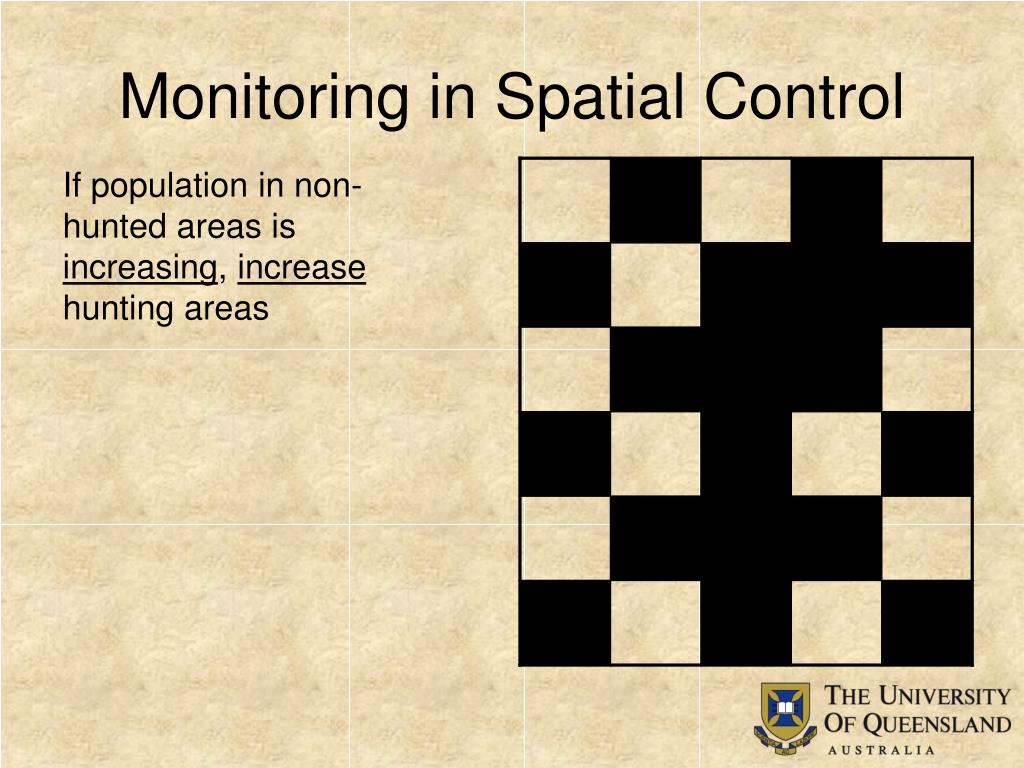 Monitoring in Spatial Control If population in non-hunted areas is increasing, increase hunting areas