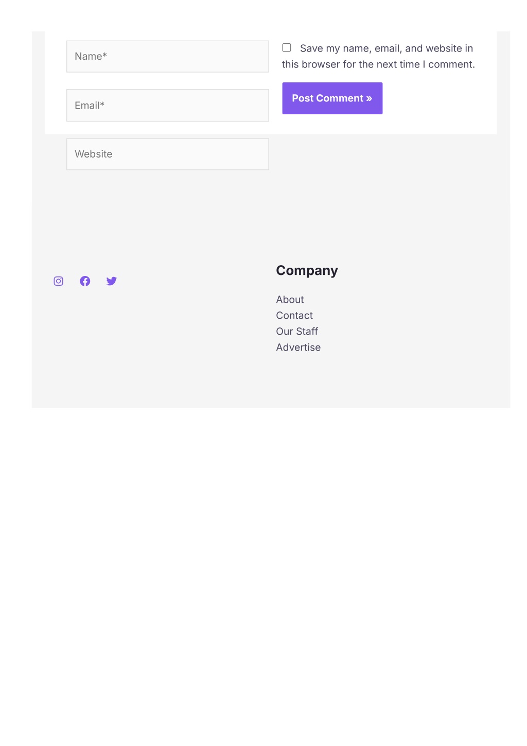 Savemyname, email, andwebsitein thisbrowserforthenexttimeIcomment. Name* PostComment » Email* Website Company About Contact OurStaff Advertise