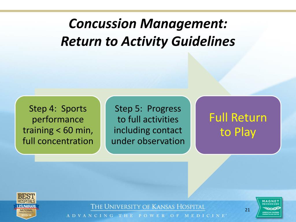 Thank You David M. Smith, M.D., FAAFP Center for Sports Medicine Clinical Assistant Professor dsmith15@kumc.edu University of Kansas Hospital Center for Concussion Management concussionreferrals@kumc.edu 913-945-8006