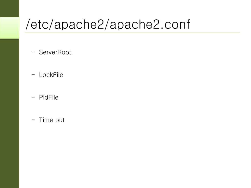 /etc/apache2/apache2.conf • ServerRoot • LockFile • PidFile • Time out