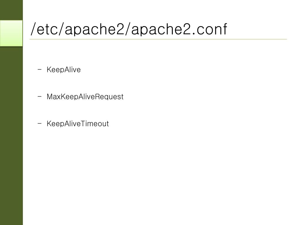 /etc/apache2/apache2.conf • KeepAlive • MaxKeepAliveRequest • KeepAliveTimeout