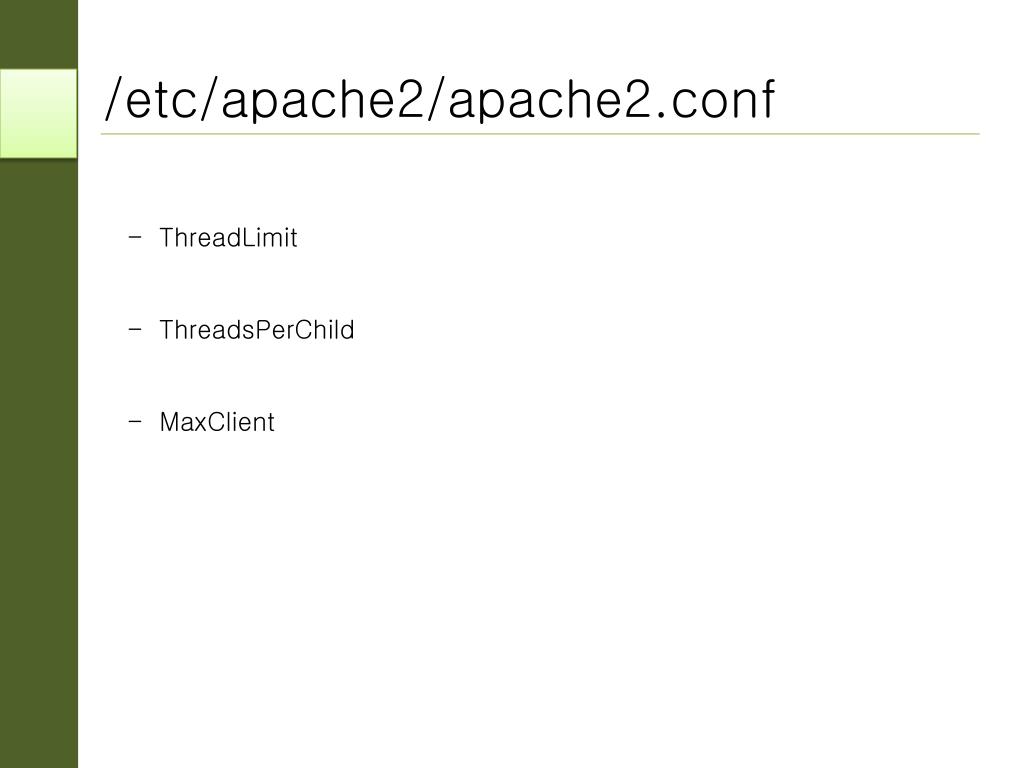 /etc/apache2/apache2.conf • ThreadLimit • ThreadsPerChild • MaxClient