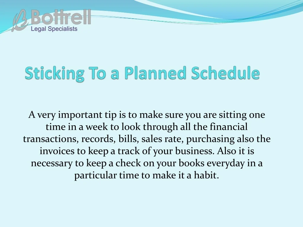 A very important tip is to make sure you are sitting one time in a week to look through all the financial transactions, records, bills, sales rate, purchasing also the invoices to keep a track of your business. Also it is necessary to keep a check on your books everyday in a particular time to make it a habit.
