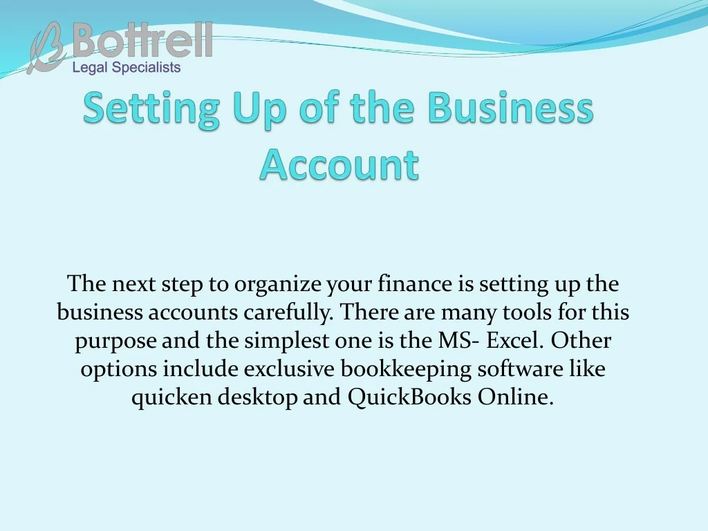 The next step to organize your finance is setting up the business accounts carefully. There are many tools for this purpose and the simplest one is the MS- Excel. Other options include exclusive bookkeeping software like quicken desktop and QuickBooks Online.