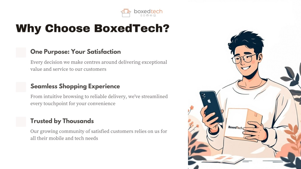 Why Choose BoxedTech? OnePurpose:YourSatisfaction Every decision we make centres around delivering exceptional value and service to our customers Seamless Shopping Experience From intuitive browsing to reliable delivery, we've streamlined every touchpoint for your convenience Trusted by Thousands Our growing community of satisfied customers relies on us for all their mobile and tech needs