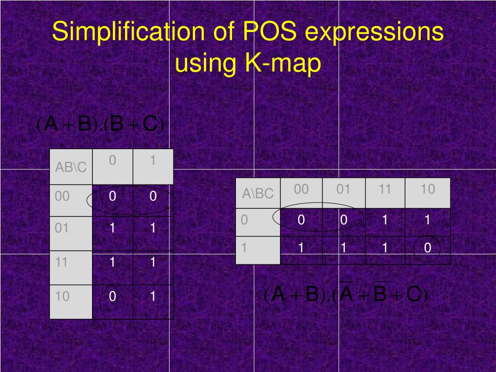 Digital Logic & Design. Mapping a Standard POS expression. Selecting n-variable K-map 0 marked in cell for each maxterm Remaining cells marked with 1. Mapping of Standard POS expression. POS expression. Simplification of POS expressions using K-map. Mapping of expression