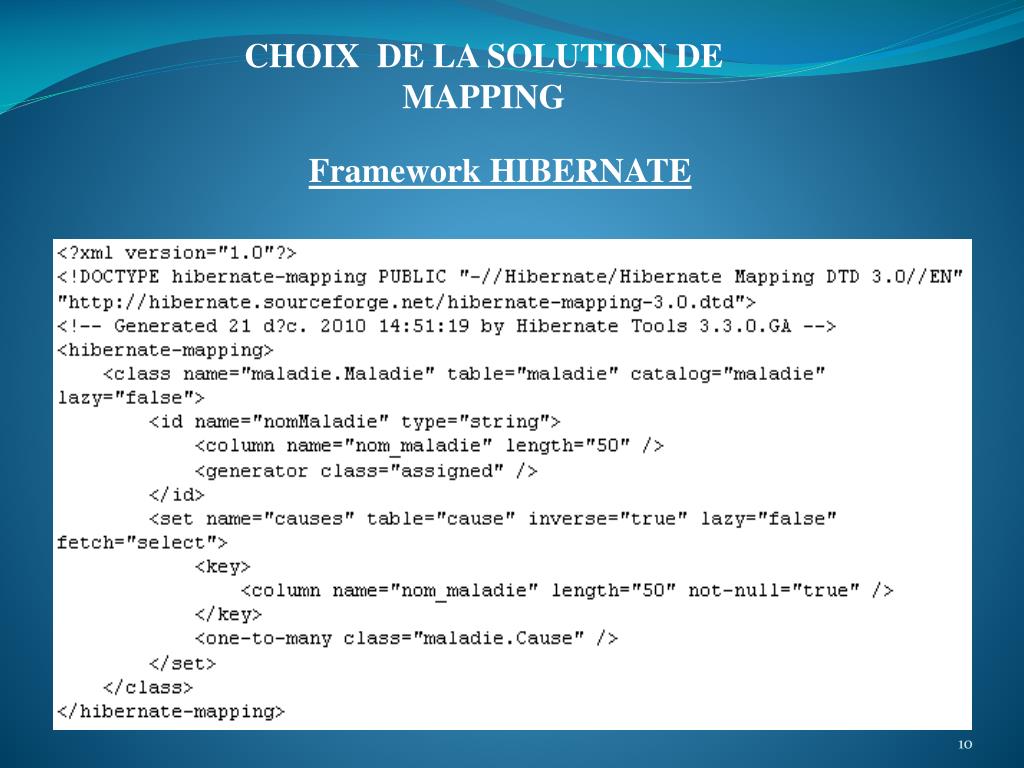 CHOIX DE LA SOLUTION DE MAPPING Framework HIBERNATE