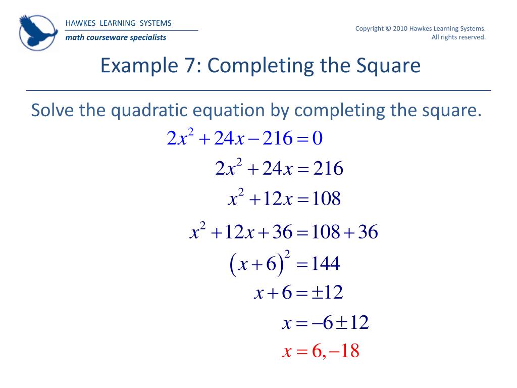 Example 7: Completing the Square Solve the quadratic equation by completing the square.