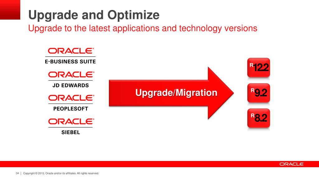 Upgrade and Optimize Upgrade to the latest applications and technology versions R12.2 R9.2 R8.2