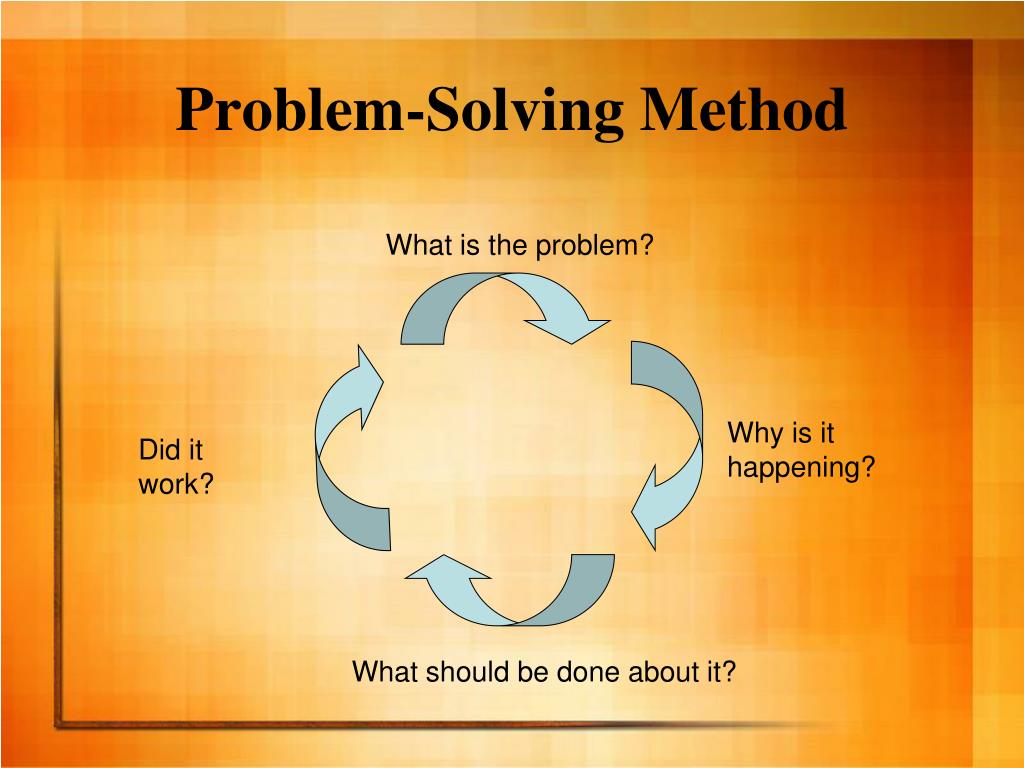What is the problem? Why is it happening? Did it work? What should be done about it? Problem-Solving Method
