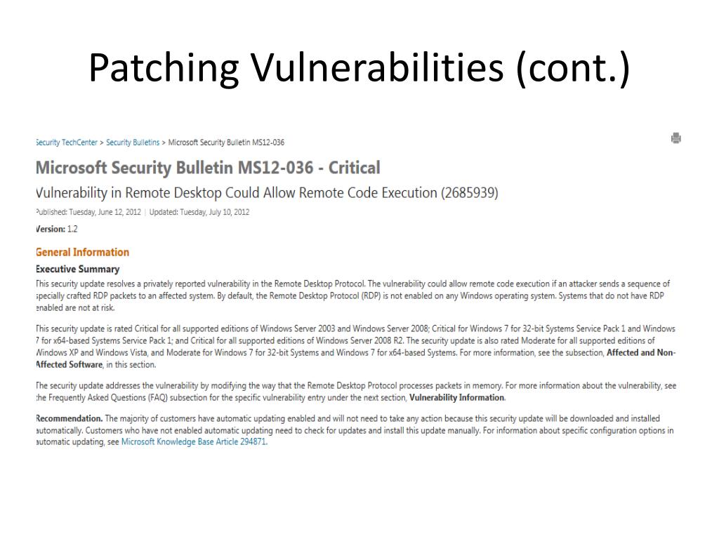 Mitigating / Patching Vulnerabilities • Patch Management • For JFS owned Servers and Workstations we will manage patches for you. • County owned Devices, you will need to come up with a patch management process. • Patches not acted upon will cause your Risk Score to go up over time! • Researching Vulnerabilities • Google “MS12-036”