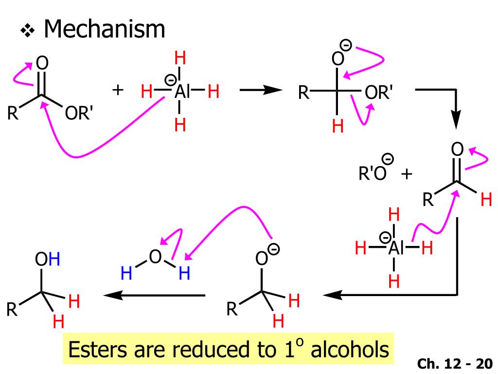 Mechanism Esters are reduced to 1o alcohols