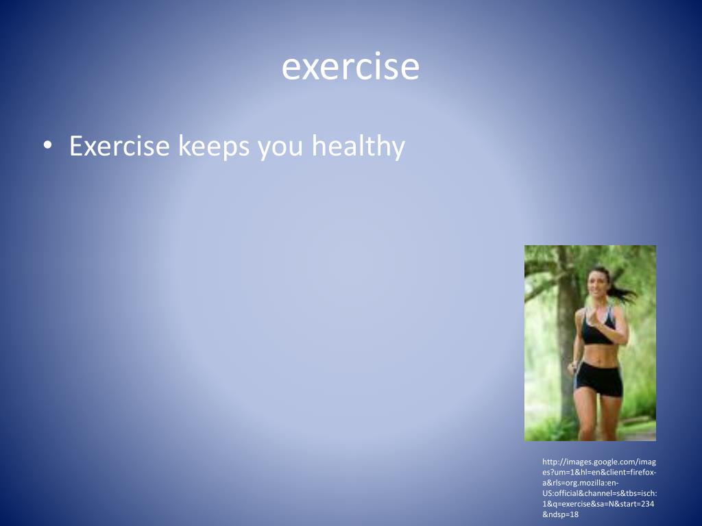exercise • Exercise keeps you healthy http://images.google.com/images?um=1&hl=en&client=firefox-a&rls=org.mozilla:en-US:official&channel=s&tbs=isch:1&q=exercise&sa=N&start=234&ndsp=18