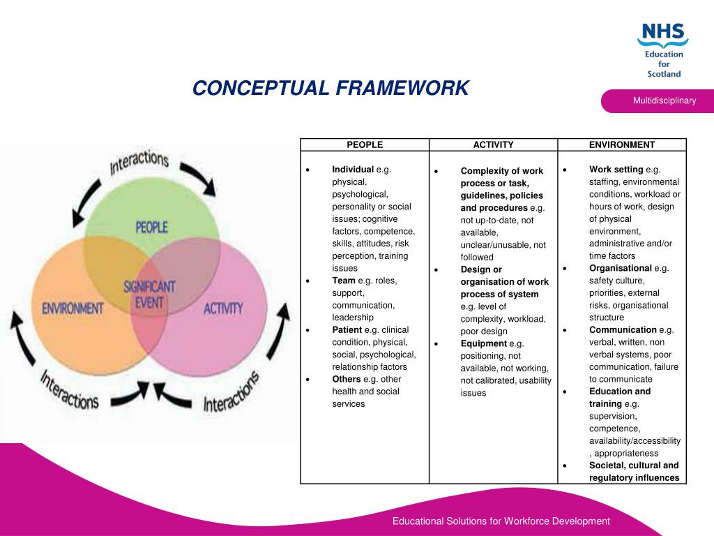 Project Learning and Outputs • Once evaluation feedback incorporated, enhancedSEA method ready for roll out – good interest from Educational Leaders/SPSP/Others • Conference Presentations (e.g. Poster at RCGP, Oral at IEHF) • Basic e-learning (BMJ Learning, NES website) • Book Chapters (NES book and Good Practice GP Training Guide) • Journal Submissions (conceptual framework, evaluation…) • Team learning (human factors, logic models, error theory…) • Organisational impacts (e.g. inter-professional working, good publicity)