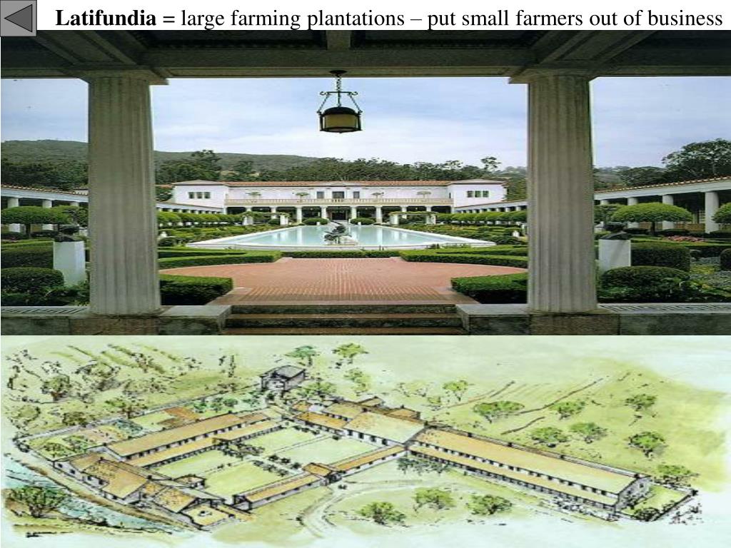 Latifundia = large farming plantations – put small farmers out of business