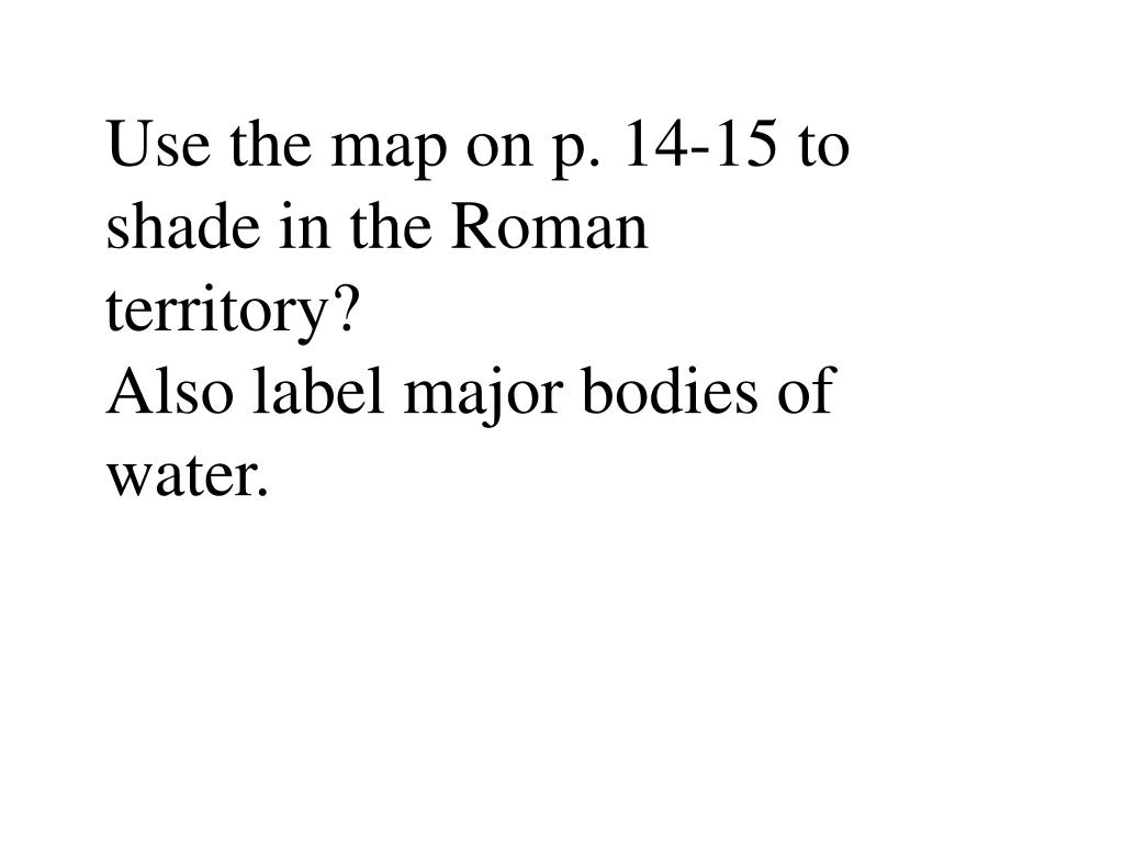Use the map on p. 14-15 to shade in the Roman territory? Also label major bodies of water.
