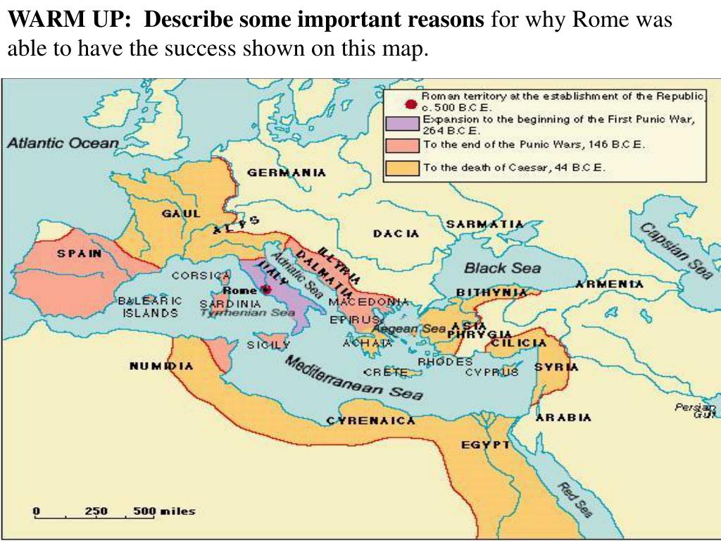 WARM UP: Describe some important reasons for why Rome was able to have the success shown on this map.