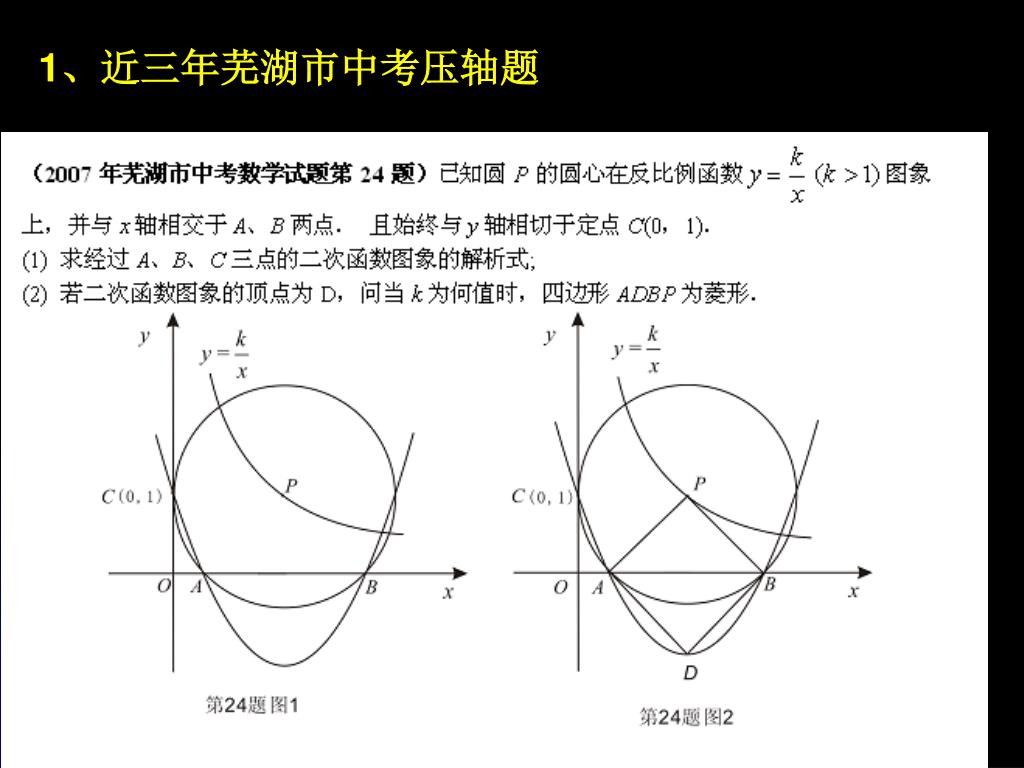 2009年芜湖市中考压轴题分析 繁昌三中 周其林