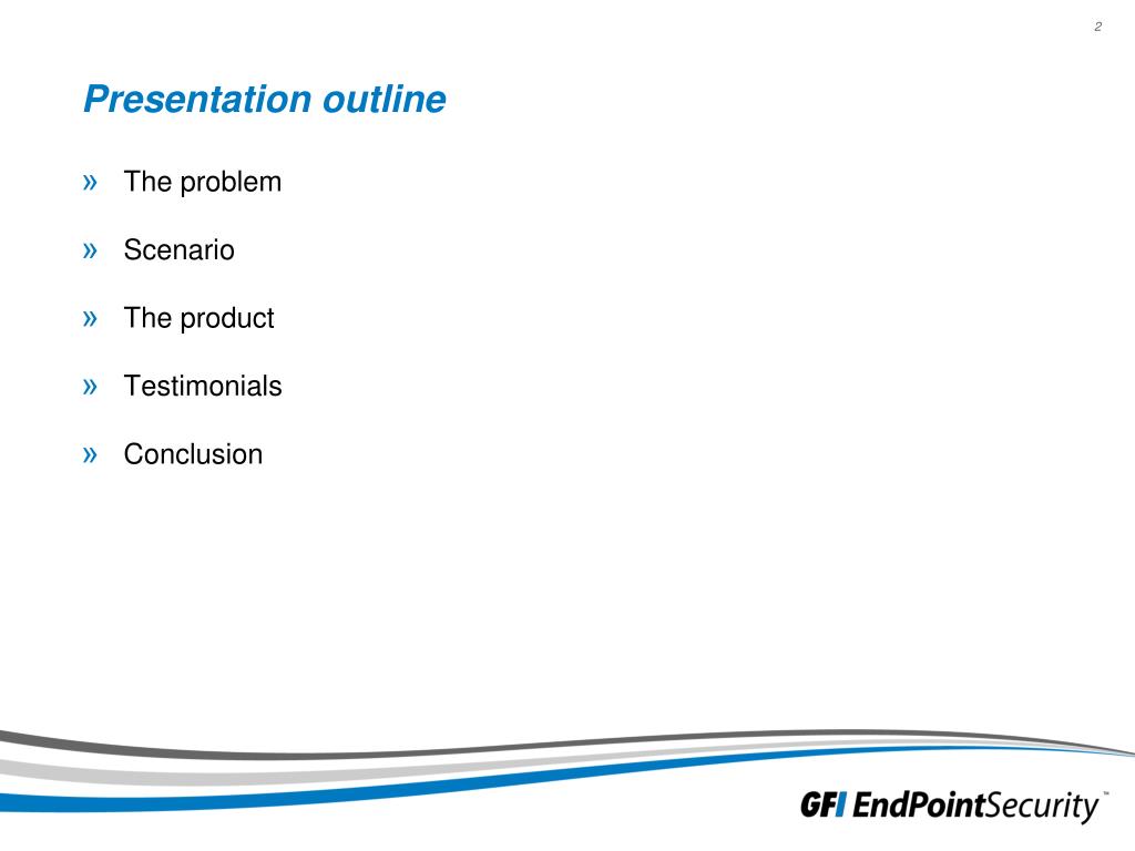 Presentation outline • The problem • Scenario • The product • Testimonials • Conclusion