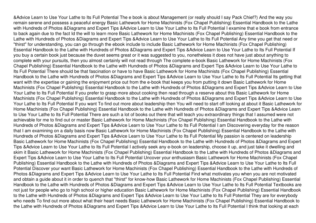 Lathework for Home Machinists (Fox Chapel Publishing) Essential Handbook to the Lathe with Hundreds of Photos &Diagrams and Expert Tips &Advice Learn to Use Your Lathe to Its Full PotentialPromotional eBooks Basic Lathework for Home Machinists (Fox Chapel Publishing) Essential Handbook to the Lathe with Hundreds of Photos &Diagrams and Expert Tips &Advice Learn to Use Your Lathe to Its Full Potential} Basic Lathework for Home Machinists (Fox Chapel Publishing) Essential Handbook to the Lathe with Hundreds of Photos &Diagrams and Expert Tips &Advice Learn to Use Your Lathe to Its Full Potential Prior to now, Ive never ever had a enthusiasm about looking through books Basic Lathework for Home Machinists (Fox Chapel Publishing) Essential Handbook to the Lathe with Hundreds of Photos &Diagrams and Expert Tips &Advice Learn to Use Your Lathe to Its Full Potential The only real time that I at any time browse a book address to cover was back again in class when you actually had no other preference Basic Lathework for Home Machinists (Fox Chapel Publishing) Essential Handbook to the Lathe with Hundreds of Photos &Diagrams and Expert Tips &Advice Learn to Use Your Lathe to Its Full Potential Following I finished school I believed looking through books was a waste of time or just for people who are going to college Basic Lathework for Home Machinists (Fox Chapel Publishing) Essential Handbook to the Lathe with Hundreds of Photos &Diagrams and Expert Tips &Advice Learn to Use Your Lathe to Its Full Potential I am aware now that the handful of instances I did study guides back then, I wasnt looking at the appropriate guides Basic Lathework for Home Machinists (Fox Chapel Publishing) Essential Handbook to the Lathe with Hundreds of Photos &Diagrams and Expert Tips &Advice Learn to Use Your Lathe to Its Full Potential I wasnt intrigued and by no means had a passion over it Basic Lathework for Home Machinists (Fox Chapel Publishing) Essential Handbook to the Lathe with Hundreds of Photos &Diagrams and Expert Tips &Advice Learn to Use Your Lathe to Its Full Potential I am pretty absolutely sure that I was not the only real one particular, pondering or feeling that way Basic Lathework for Home Machinists (Fox Chapel Publishing) Essential Handbook to the Lathe with Hundreds of Photos &Diagrams and Expert Tips &Advice Learn to Use Your Lathe to Its Full Potential Lots of people will start a e book and after that halt fifty percent way like I used to do Basic Lathework for Home Machinists (Fox Chapel Publishing) Essential Handbook to the Lathe with Hundreds of Photos &Diagrams and Expert Tips &Advice Learn to Use Your Lathe to Its Full Potential Now days, Contrary to popular belief, Im looking at textbooks from protect to go over Basic Lathework for Home Machinists (Fox Chapel Publishing) Essential Handbook to the Lathe with Hundreds of Photos &Diagrams and Expert Tips &Advice Learn to Use Your Lathe to Its Full Potential There are times when I are unable to put the book down! The explanation why is mainly because Im extremely serious about what I am studying Basic Lathework for Home Machinists (Fox Chapel Publishing) Essential Handbook to the Lathe with Hundreds of Photos &Diagrams and Expert Tips &Advice Learn to Use Your Lathe to Its Full Potential When you look for a e book that actually receives your consideration you should have no difficulty reading it from entrance to back again Basic Lathework for Home Machinists (Fox Chapel Publishing) Essential Handbook to the Lathe with Hundreds of Photos &Diagrams and Expert Tips &Advice Learn to Use Your Lathe to Its Full Potential The way I begun with looking through a good deal was purely accidental Basic Lathework for Home Machinists (Fox Chapel Publishing) Essential Handbook to the Lathe with Hundreds of Photos &Diagrams and Expert Tips &Advice Learn to Use Your Lathe to Its Full Potential I liked watching the Television present "The Canine Whisperer" with Cesar Millan Basic Lathework for Home Machinists (Fox Chapel Publishing) Essential Handbook to the Lathe with Hundreds of Photos &Diagrams and Expert Tips &Advice Learn to Use Your Lathe to Its Full Potential Just by watching him, acquired me actually fascinated with how he can connect and communicate with dogs applying his energy Basic Lathework for Home Machinists (Fox Chapel Publishing) Essential Handbook to the Lathe with Hundreds of Photos &Diagrams and Expert Tips &Advice Learn to Use Your Lathe to Its Full Potential I was looking at his reveals Just about day by day Basic Lathework for Home Machinists (Fox Chapel Publishing) Essential Handbook to the Lathe with Hundreds of Photos &Diagrams and Expert Tips &Advice Learn to Use Your Lathe to Its Full Potential I was so serious about the things that he was accomplishing that I was compelled to purchase the book and find out more over it Basic Lathework for Home Machinists (Fox Chapel Publishing) Essential Handbook to the Lathe with Hundreds of Photos &Diagrams and Expert Tips