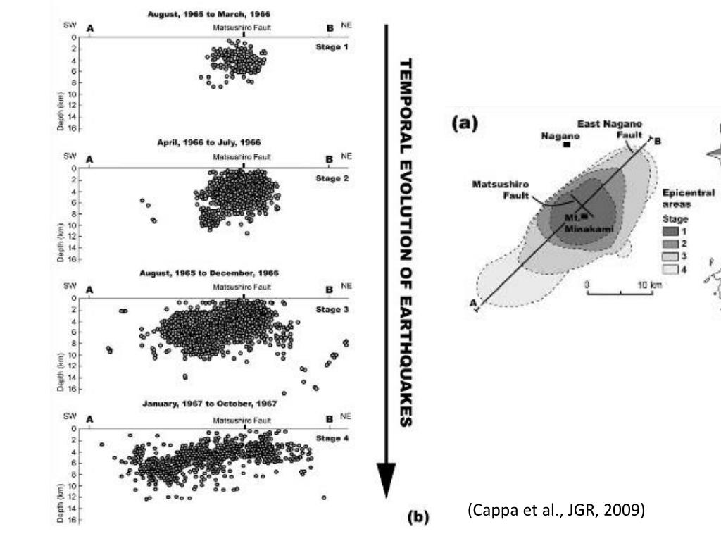 Why do the b-value increase ? Increase of the Coulomb failure stress: - shear stress increase - pore pressure rise • 2 possible scenarios: - successive stress accumulation due to propagating rupture front - gradual inflow of fluids in the seismogenic zone.