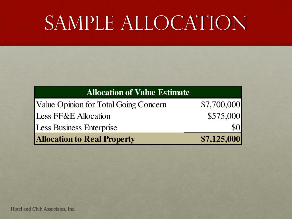 Sample Allocation Hotel and Club Associates, Inc.