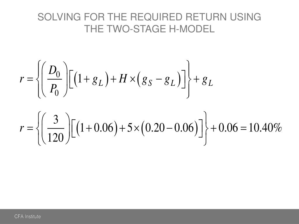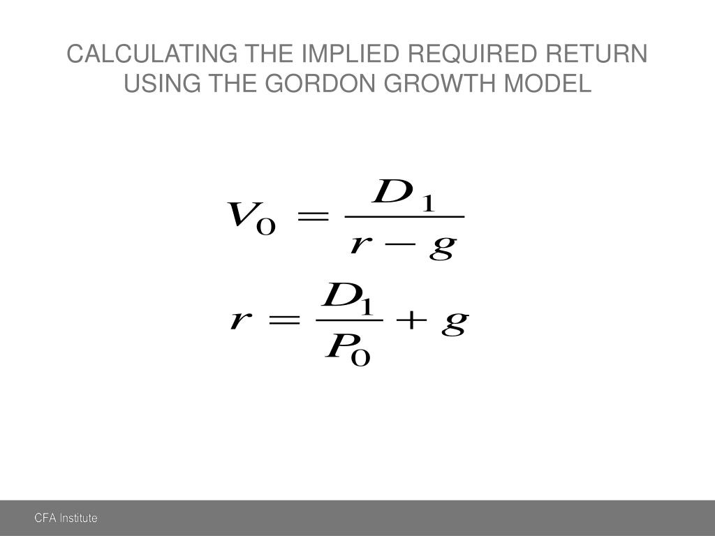 Example: Calculating the Implied Required Return Using the Gordon Growth Model Using the previous common stock example and the current stock price of $24, what is the implied required return?