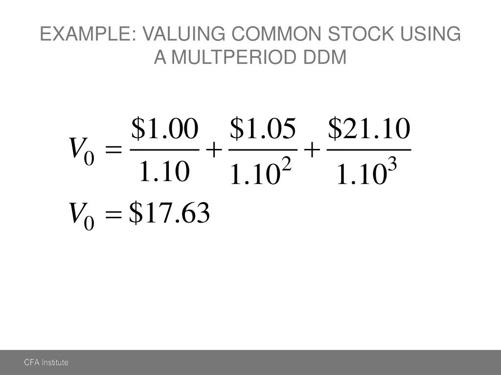 Discounted Dividend Valuation. Presenter Venue Date. Discounted Cash Flow Models. Choice of Discounted Cash Flow Models. Valuing Common Stock Using a Multi-period DDM. Example: Valuing Common Stock Using a Multperiod DDM. Example: Valuing Common Stock using a Multperiod DDM.
