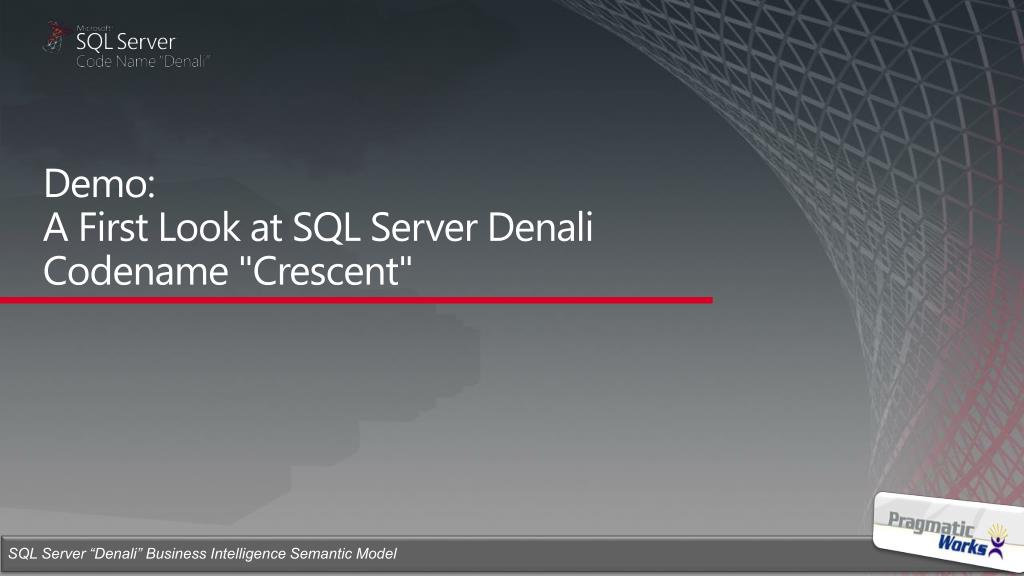 Demo: A First Look at SQL Server Denali Codename "Crescent" SQL Server “Denali” Business Intelligence Semantic Model