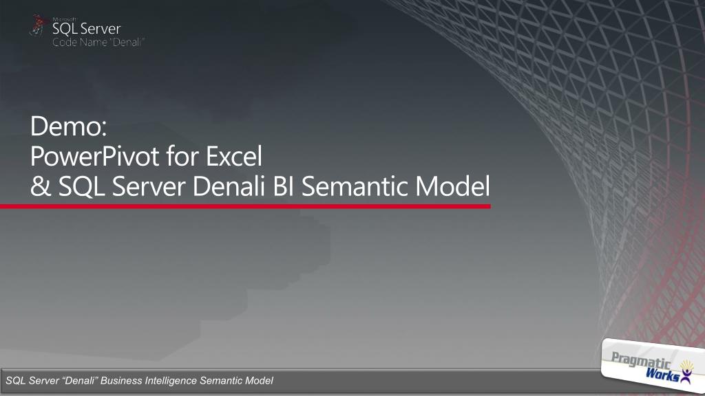 Demo:PowerPivot for Excel& SQL Server Denali BI Semantic Model SQL Server “Denali” Business Intelligence Semantic Model