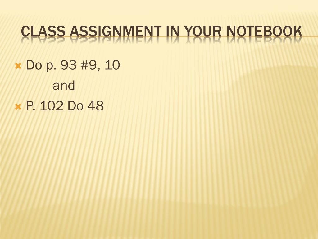 Do p. 93 #9, 10 and P. 102 Do 48 Class Assignment in your Notebook