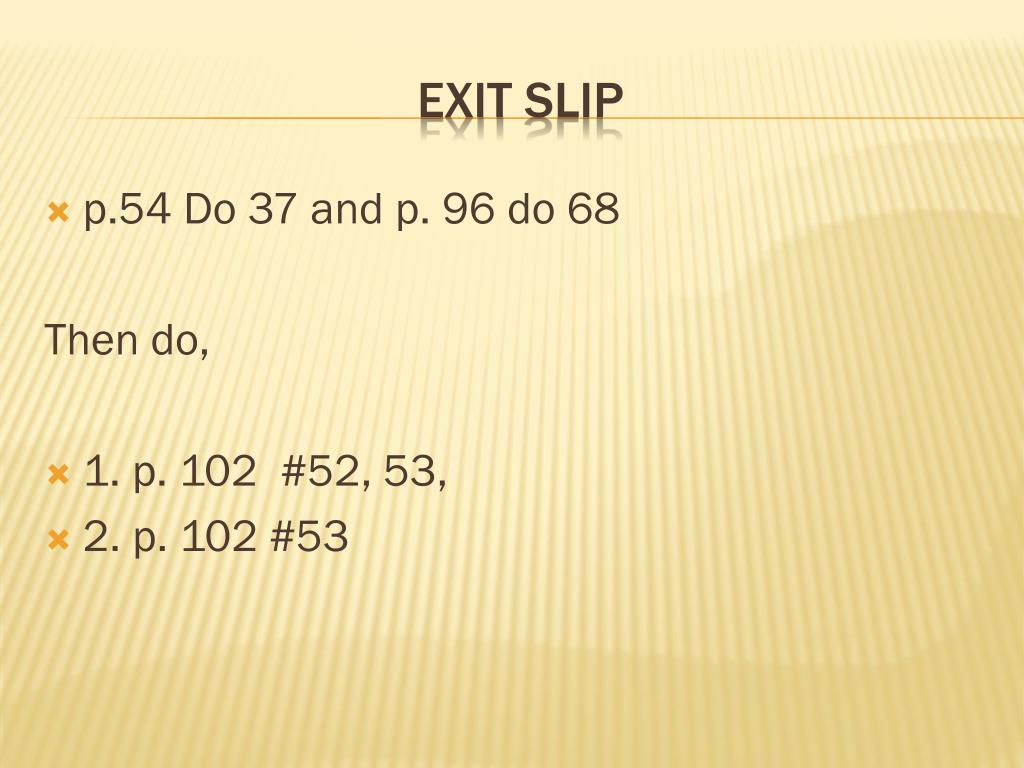 p.54 Do 37 and p. 96 do 68 Then do, 1. p. 102 #52, 53, 2. p. 102 #53 Exit Slip